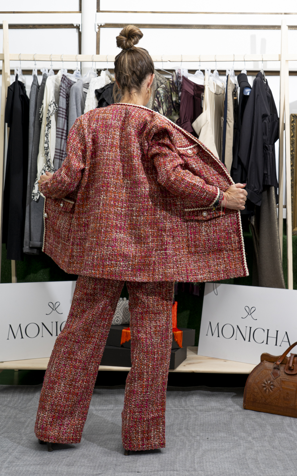 Chaqueta tipo Chanel burdeos: Elegancia clásica con detalles modernos